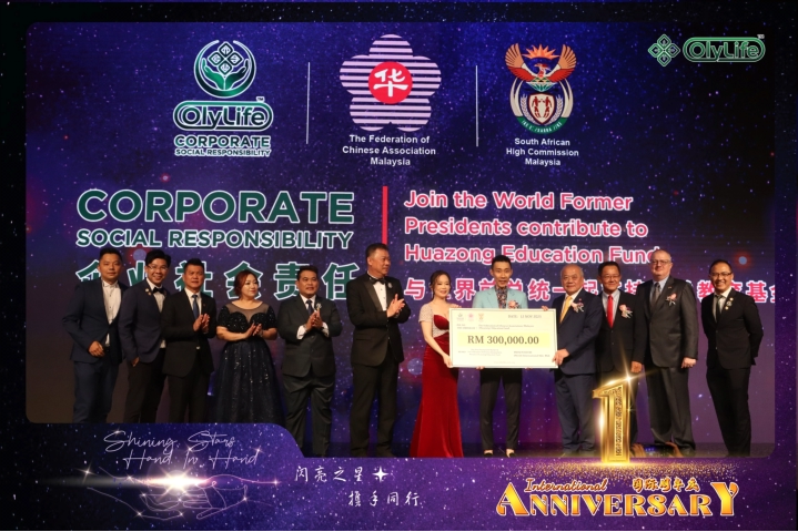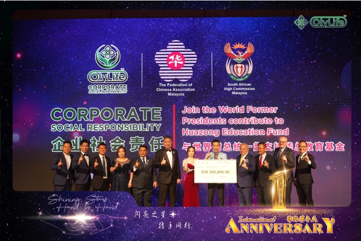 OlyLife怀抱取之社会,用之社会的理念,向华总教育资金捐献RM300,000 我们坚守履行企业社会责任的承诺,不懈为社会献出更多的关怀与贡献! OlyLife embraces the philosophy of a "give-back society" and has donated RM300,000 to the Hua Zong Education funds! We are committed to fulfilling our corporate social responsibility and tirelessly contributing more care and support to society
